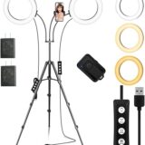 2個LEDリングライト 三脚 照明/撮影兼用 フロアランプ 360回転式 Bluetoothリモコン付き 高輝度 3色モード付き 10段階調光 撮影キット メイクアップ/YouTube生放送/ビデオカメラ撮影用